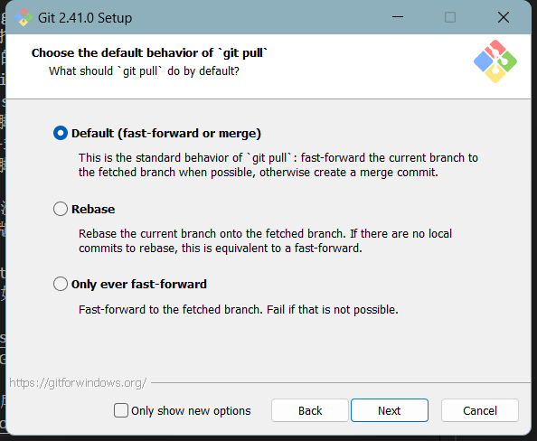 继续。设定 git pull 的默认行为。通常我们选择第一个选项,这是因为 rebase 后可能导致仓库的分支提交记录被篡改,无法查看完整历史记录,且 rebase 后的分支可能会因为被 git 认定为和其他 fork 出去的分支不一样,而被拒绝合并,引发更多混乱的问题。你可能一头雾水,只需要知道选择第一个选项即可。