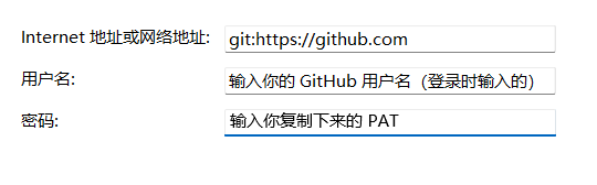 密码填写你在 GitHub 上创建 PAT 时复制的密钥内容。