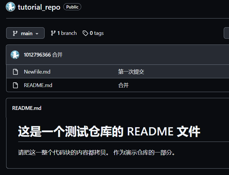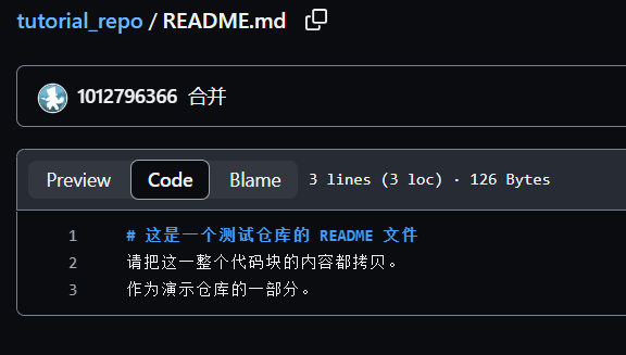 这时候我们在远端仓库中查看推送后的文件,就会发现它已经变成了我们先前编辑的样子(因为我本人提交的时候并没有完全按照文章中的示范来修改,所以这里稍有不同,请以你提交后的效果为准)。